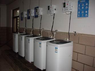 杭州市錢江農場邊蕭山高教園浙江旅游學院,選用我公司海爾50-7288投幣洗衣機,投幣烘干機,投幣洗鞋機。。和校園一卡通中心聯網,可以實現投幣刷卡2用